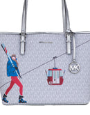 Michael Kors Jet Set Girls Print Medium Signature PVC Carryall Shoulder Tote Handbag (Bright White Multi)