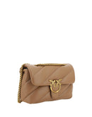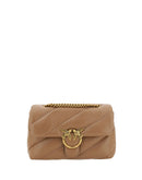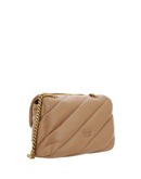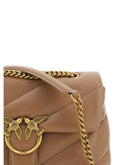 Calfskin Love Classic Shoulder Bag by Pinko, front closure with magnetic button, iconic gold-plated Love Birds logo embossed on the front, quilted and padded design, double internal compartment, sliding chain shoulder strap, iconic brand monogram embroidered tone-on-tone on the back.