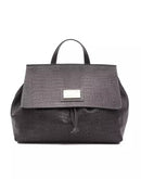 Elevate your ensemble with the Pompei Donatella’s versatile marvel – a sophisticated, gray leather convertible handbag that doubles as a backpack. Featuring adjustable straps and an exquisite crocodile-print texture, this chic accessory will turn heads wherever you go. The interior boasts a signature DP logo lining, while the external visible logo stamps your look with luxury. Complete with a dustbag for protection, this piece measures at a perfect 23.5×31.5×16 cm size for everyday use or special occasions.