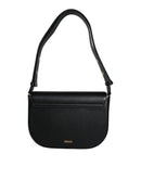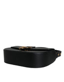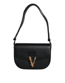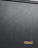 Versace Black Grainy Calf Leather Logo Crossbody Shoulder Bag