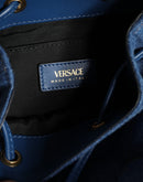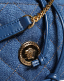 Versace Blue Quilted Denim Leather Crossbody Shoulder Bag