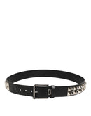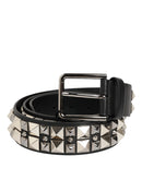Dolce & Gabbana Black Calf Leather Studded Silver Buckle Belt