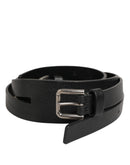 Dolce & Gabbana Black Double Strap Leather Gold Buckle Belt