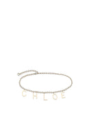 Metallic Belt by Chloé with a chain design, closed at the back with a practical snap hook. The model is embellished with lettering pendants that recreate the brand’s iconic monogram, adding a distinctive and shiny touch. Perfect for enhancing the waist with elegance and contemporary style.
