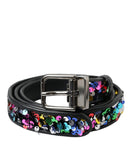 Dolce & Gabbana Black Sequined Silver Metal Buckle Women Belt