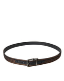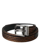 Dolce & Gabbana Gold Jacquard Stripes Silver Metal Buckle Belt