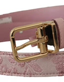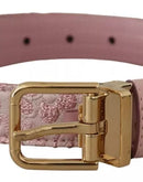 Dolce & Gabbana Pink Jaquard Embroidered Gold Tone Metal Buckle Belt