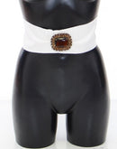 Dolce & Gabbana White Crystal Brass Wide Waist Runway Belt