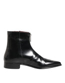 Dolce & Gabbana Black Calfskin Leather Men SHORT Boots Shoes