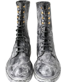 Dolce & Gabbana Black Gray Leather Mid Calf Boots Shoes