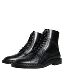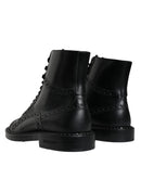 Dolce & Gabbana Black Leather Lace Up Mid Calf Boots Shoes