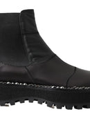 Dolce & Gabbana Black Leather Slip on Stretch Boots