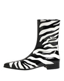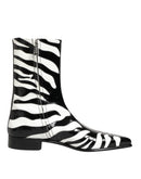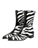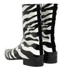 Dolce & Gabbana Black White Zebra Leather Mid Calf Boots Shoes