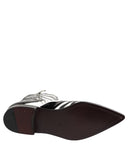 mid calf boots featuring a bold black-and-white zebra pattern. Designed for a fashion-forward edge, they offer a sleek, elongated silhouette that instantly elevates any outfit. Perfect for adding a touch of wild sophistication to both casual and evening ensembles.