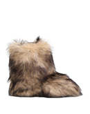 short boots, crafted with plush brown faux ski fur for a luxurious winter look. Designed for comfort and effortless wear, they feature a cozy silhouette perfect for cold-weather outfits. Ideal for pairing with casual or après-ski ensembles for a chic, seasonal finish.
