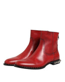 Dolce & Gabbana Red Studded Chelsea Short Ankle Boots Shoes