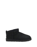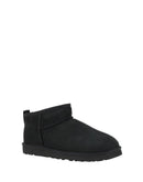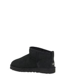 Ultra mini leather Ankle Boots by Ugg feature a knurled sole for grip and durability. The round toe provides optimal comfort, while the soft shearling lining ensures warmth and comfort. The brand’s iconic monogram is applied on the heel, adding a distinctive touch. Embossed stitching and a suede design complete the aesthetic, making these boots a perfect blend of style and functionality for winter.