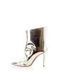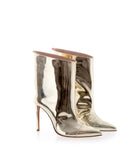 Platinum Alextoelow Alexandre Vauthier ankle boot in mirror effect leather, pointed, asymmetrical cut. Insole: 26 cm. Heel: 10,5 cm Heel inside:22MA173