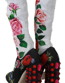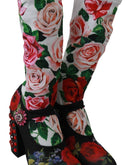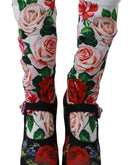 Dolce & Gabbana Black Floral Socks Crystal Jersey Boots Shoes