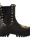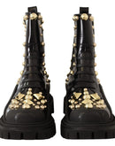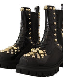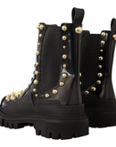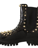 Dolce & Gabbana Black Leather Studded Combat Boots