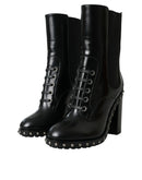Dolce & Gabbana Black Leather Studded Lace Up Boots Shoes