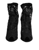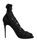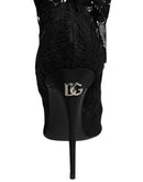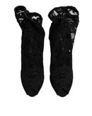 Dolce & Gabbana Black Stretch Taormina Lace Boots Shoes