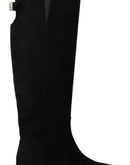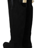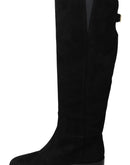 Dolce & Gabbana Black Suede Knee High Flat Boots Shoes