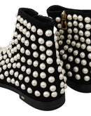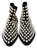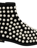 Dolce & Gabbana Black Suede Pearl Studs Boots Shoes