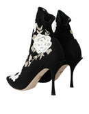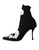 Dolce & Gabbana Black White Embroidery Slip On Boots Shoes