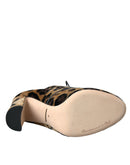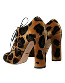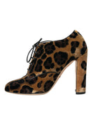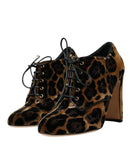 Dolce & Gabbana Brown Leopard Hair Lace Up Booties Shoes
