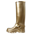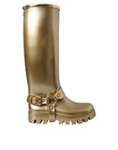 Dolce & Gabbana Metallic Gold Rubber PVC Rain Boots Shoes
