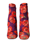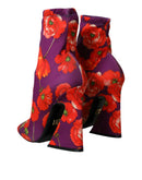 Dolce & Gabbana Purple Floral Jersey Stretch Boots Shoes
