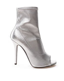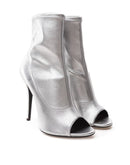 Open Toe Ankle Boots in Silver Giuseppe Zanotti. Silver leather, open toe, elasticized upper part of the boot leg, stiletto heel. Composition:100% Leather-Sku inside:24MG165