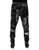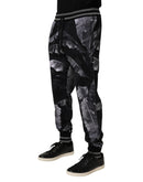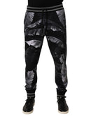 Dolce & Gabbana Black Banana Leaf Cotton Jogger Trouser Pants