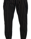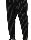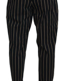 Dolce & Gabbana Black Beige Striped Cotton Stretch Pants