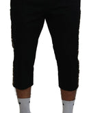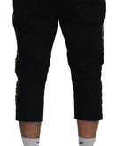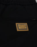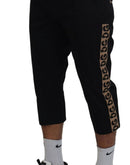 Dolce & Gabbana Black Cotton Elastic Waist DG Logo Cropped Pants