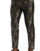 Dolce & Gabbana Silver Gold Jacquard Men Trouser Dress Pants