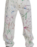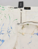 Dolce & Gabbana White Cotton Color Splash Print Denim Pants
