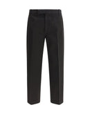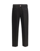 Thom Browne’s Melbourne cotton Pants are a stylish design with a straight-leg cut that gives a refined silhouette. The front closure consists of a hook, button and zipper for a secure and stylish fit. Two side welt pockets and two buttoned back welt pockets offer practicality and a touch of class. The iconic tricolor patch applied to the back adds a distinctive brand detail. With a high waist, these pants combine classic elegance and modernity, perfect for a sophisticated and timeless look.