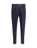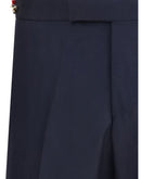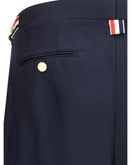 Thom Browne’s wool Pants features a front zipper and hook-and-eye closure, two side welt pockets and two back button pockets. Distinctive tricolor detailing at the back and waist, iconic hallmarks of the brand’s aesthetic, complete the design.