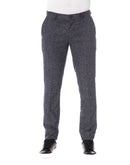 Elevate your wardrobe with these impeccably tailored Trussardi trousers, crafted from a sophisticated blend of cotton, wool, polyamide, and elastane for all-day comfort and durability. These pants feature a sleek front zipper and button closure for a secure fit. Practical yet stylish, they come complete with side pockets for your essentials and refined back welt pockets. Exude confidence and style in this Italian-designed Black masterpiece, perfect for the man whose presence is felt the moment he steps into the room.
