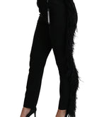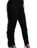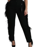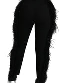 Dolce & Gabbana Black Feather Straight High Waist Wool Pants