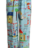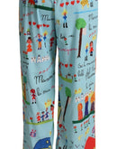 Dolce & Gabbana Light Blue Drawing Mid Waist Wide Leg Pants