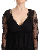 Aniye By Black Floral Lace Cotton Long Sleeves V-neck Shift Dress