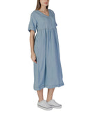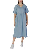 The B.YOUNG BYLANA LOOSE DRESS (model 20813123) is the perfect choice for women seeking a casual yet elegant style. Made from 100% cotton, this long dress ensures maximum breathability and comfort throughout the day. The loose fit design provides a relaxed and comfortable silhouette, while the V-neckline and short sleeves add a feminine and modern touch. Featuring a midi length and visible stitching, this dress offers a contemporary look ideal for leisure or informal occasions. Pair it with sneakers or sandals for a fresh and versatile outfit.