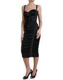 Dolce & Gabbana Black Bustier Corset Lace Bodycon Midi Dress