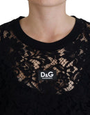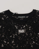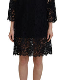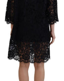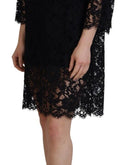 Dolce & Gabbana Black Floral Lace Cotton Shift Mini Dress
