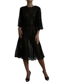 Dolce & Gabbana Black Floral Lace Sheer A-line Midi Dress