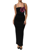 Dolce & Gabbana Black Flower Applqies Bodycon Sheath Dress