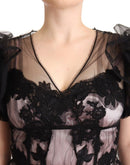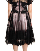Dolce & Gabbana Black Pink Floral Lace A-line Midi Sheer Dress
